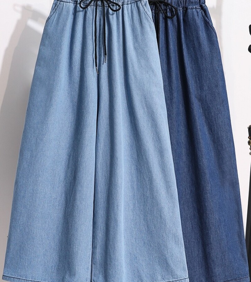 Plus Size Elastic Waist Thin Casual Summer 7 Points Denim Capri Pants Cropped Jeans for Women S M L XL XXL XXXL 4XL 5XL