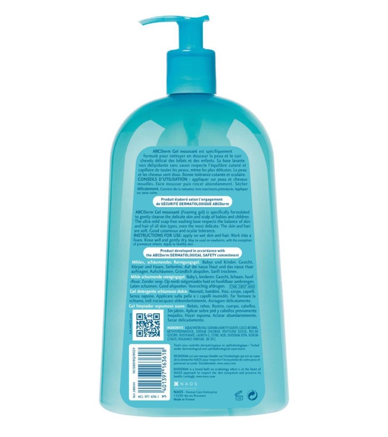 Bioderma ABCDerm沐浴露(凝胶慕斯),1L,有效期02/25