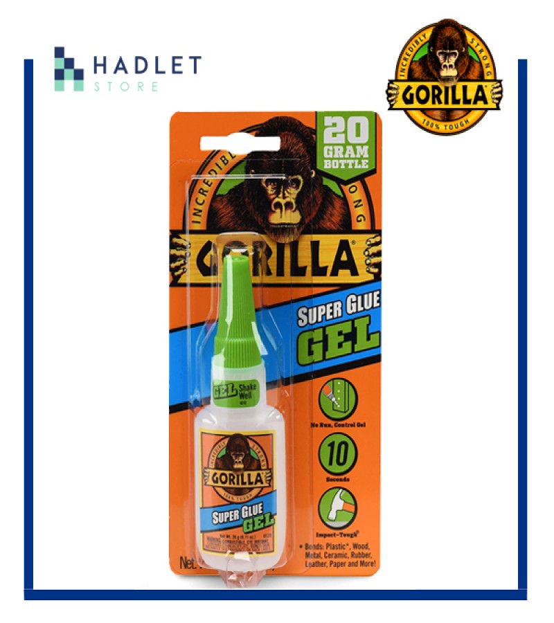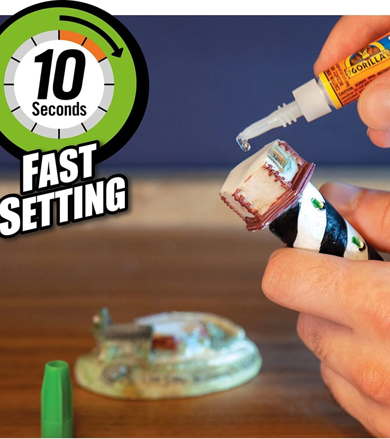 Gorilla Super Glue Gel is an easy-to-use, thicker and more controlled formula great for multiple surfaces and vertical applications. Developed for long-lasting repairs in an instant, the clear glue dries in 10–45 seconds. This super glue gel is specially formulated to absorb drops, impacts and shocks. Super glue, also referred to as cyanoacrylate glue, or CA glue, works on a variety of materials, including plastic, metal, fabric, stone, ceramic, paper, rubber and more.